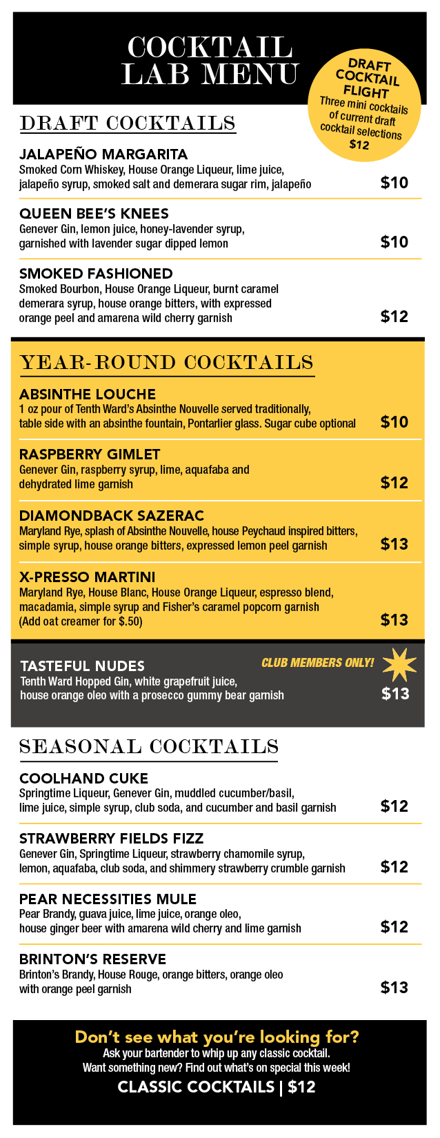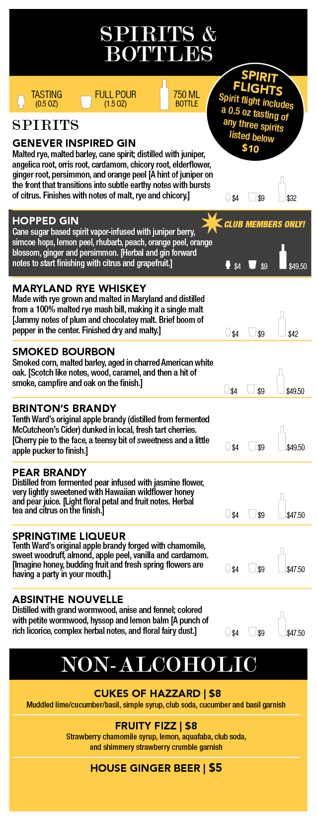 Cocktail Bar & Spirits Menu – Frederick, MD